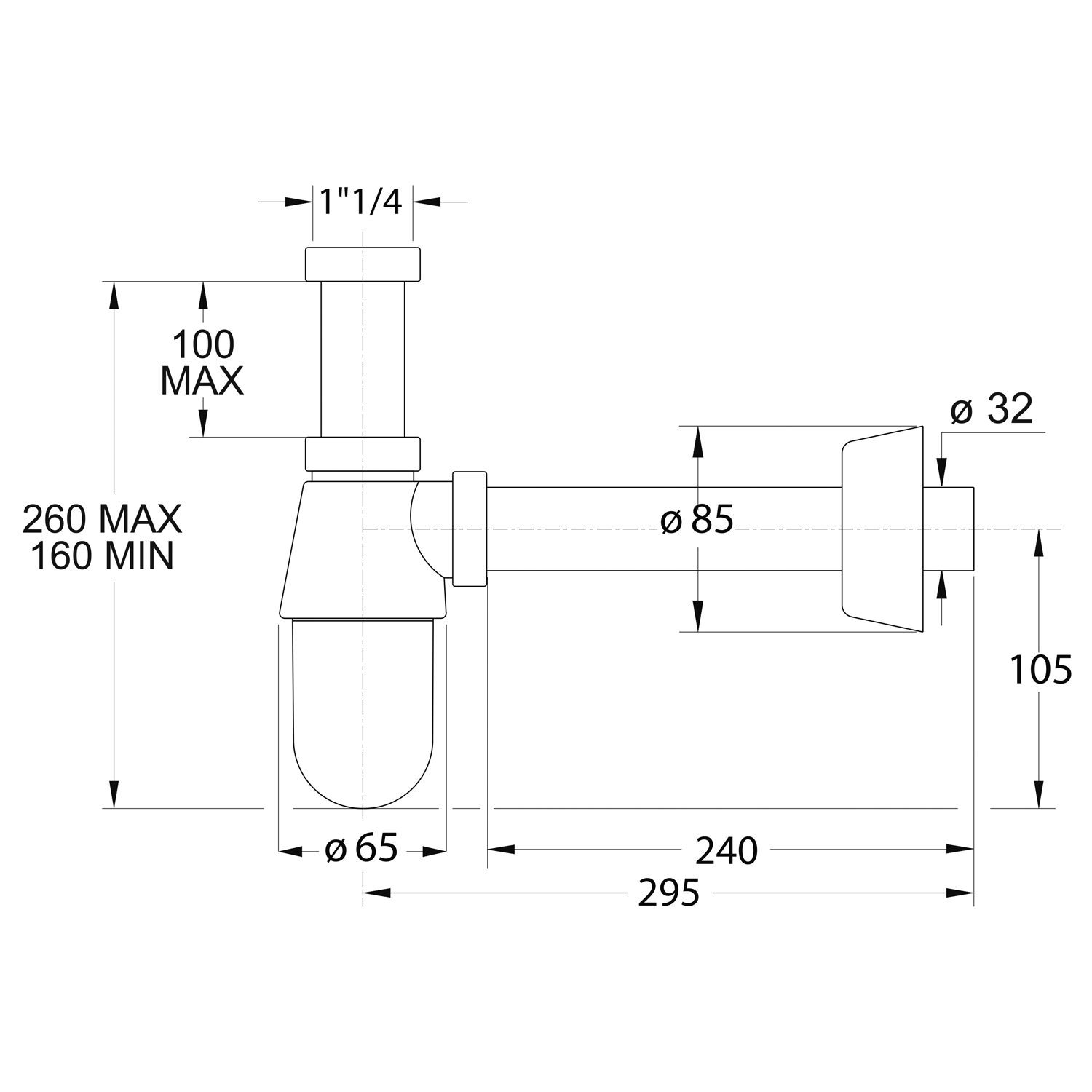 Model wykonany jest z trwałego tworzywa ABS, co zapewnia odporność na wilgoć oraz lekką konstrukcję ułatwiającą montaż. Standardowy gwint 5/4″ oraz odpływ 32 mm sprawiają, że syfon jest kompatybilny z większością umywalek dostępnych na rynku.