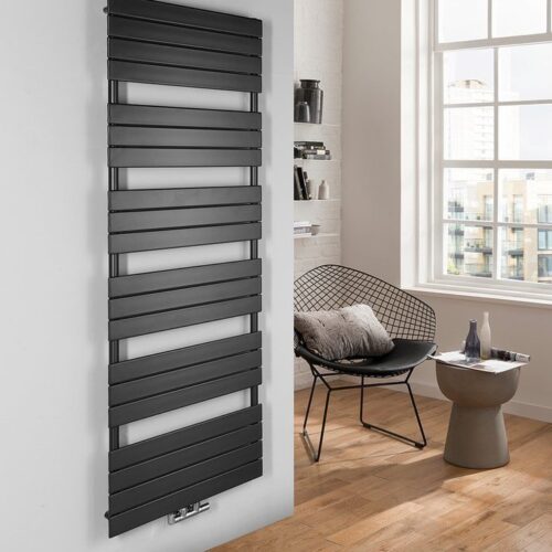 ALBRECHT grzejnik 600×1570 mm podłączenie środkowe dolne czarny mat